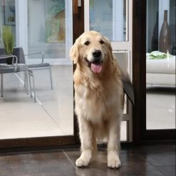 The PetSafe Freedom Patio Panel Pet Door allows your dog or cat to come and go as it pleases through your sliding glass door. These doors feature a heavy-duty aluminum construction and shatter-resistant, tempered safety glass. It’s also equipped with the energy-conserving ultraseal flexible flap system designed to keep the heat and cold outdoors.