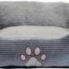 This couch style pet bed has a soft, plush sleep surface and is filled with supportive, eco-friendly polyester fill.