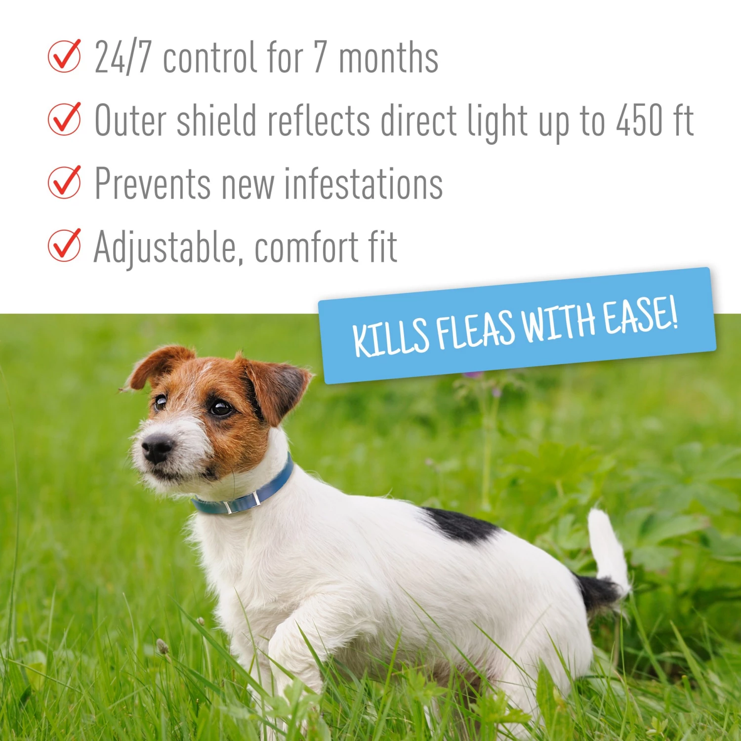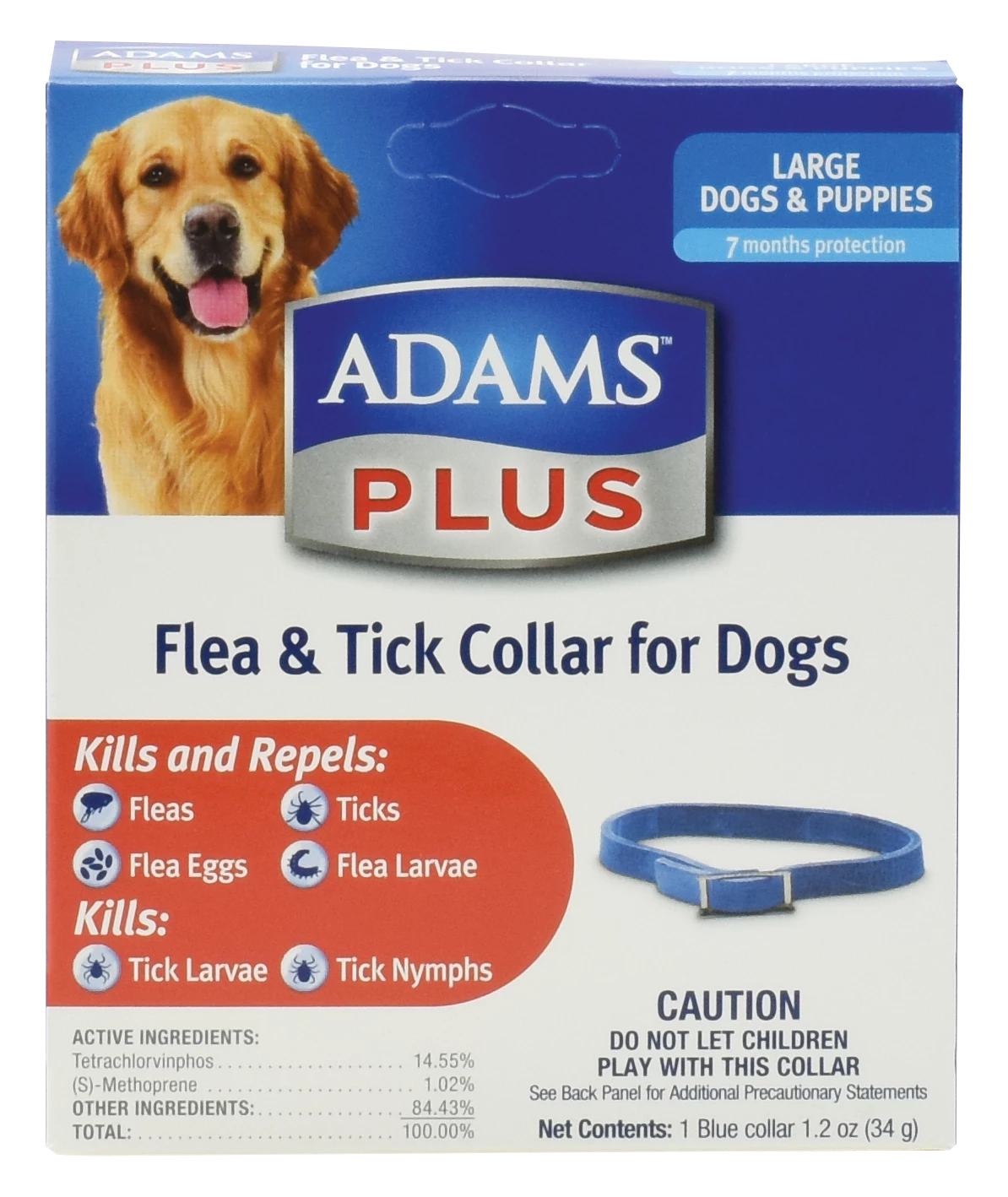 The Adams Plus Flea and Tick Collar for Dogs is perfect for medium to large size dogs. It provides quick relief from biting fleas and ticks and continuous protection for up to 7 months. Our collar prevents infestation by killing 3 stages of the flea and tick lifecycles. This collar provides one-step to treatment and prevents re-infestations. Even when wet or completely submerged, the collar continues to be effective. This collar is fully adjustable and water-resistant.