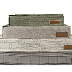 Whether your furry family member is a belly-sleeper, back-sleeper, paws-in, or paws-out, our Lounger bed is sure to be the most comfy place for a nap. Our Lounger beds are over-stuffed with a proprietary fill made from recycled plastic water bottles that gives just the right amount of support without flattening or clumping over time. We even tailored the seams with a mini-flange inspired by fine home furnishings. Sewn in a beautiful cream and moss colored Sunbrella fabric, with a modern geometric pattern, that is soft to the touch, durable, resists moisture, and is washable. There is simply no better fabric choice for a pet bed. Each piece is made by hand in the USA and begins manufacturing the day you place your order. Thoughtfully designed with your dog and your home in mind, our Lounger bed performs as good as it looks.??We recommend measuring your sleeping pet to find the perfect bed size. Pets who curl up to sleep can fit on a smaller bed, while those who stretch out need a larger bed. To determine the ideal bed length, measure your pet in their typical sleeping position, then add 6-10” for the final bed size. When in doubt, we suggest ordering the size up. Please double check that you have chosen the correct size before placing your order.??Small: 22.5 in. x 22.5 in. x 9 in. high (dogs less than 30 lbs)?Medium: 28 in. x 28 in. x 10 in. high (dogs 30-60 lbs)?Large: 42 in. x 30 in. x 12 in. high (dogs 60-90 lbs)?X-Large: 47 in. x 36 in. x 12 in. high (dogs over 90 lbs)