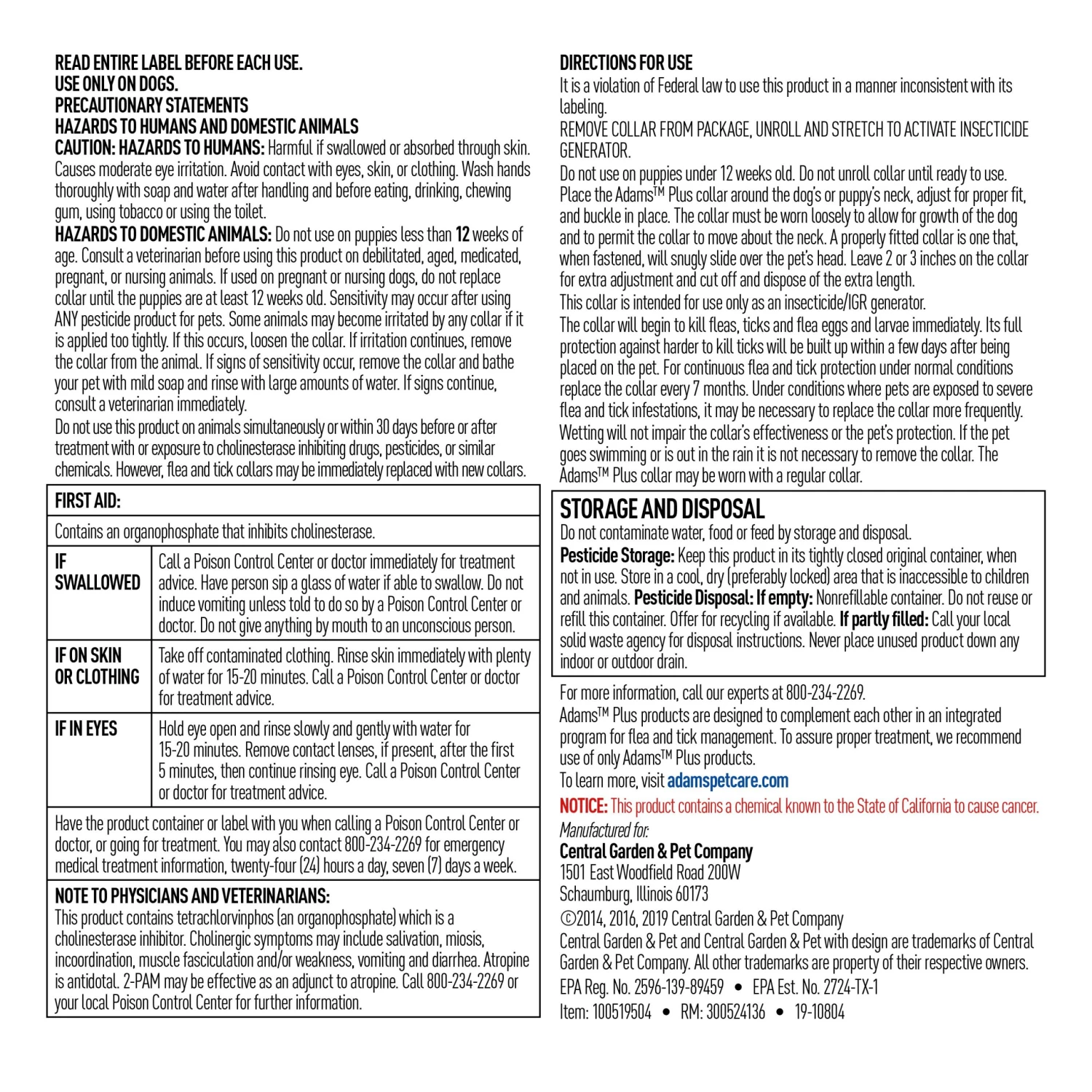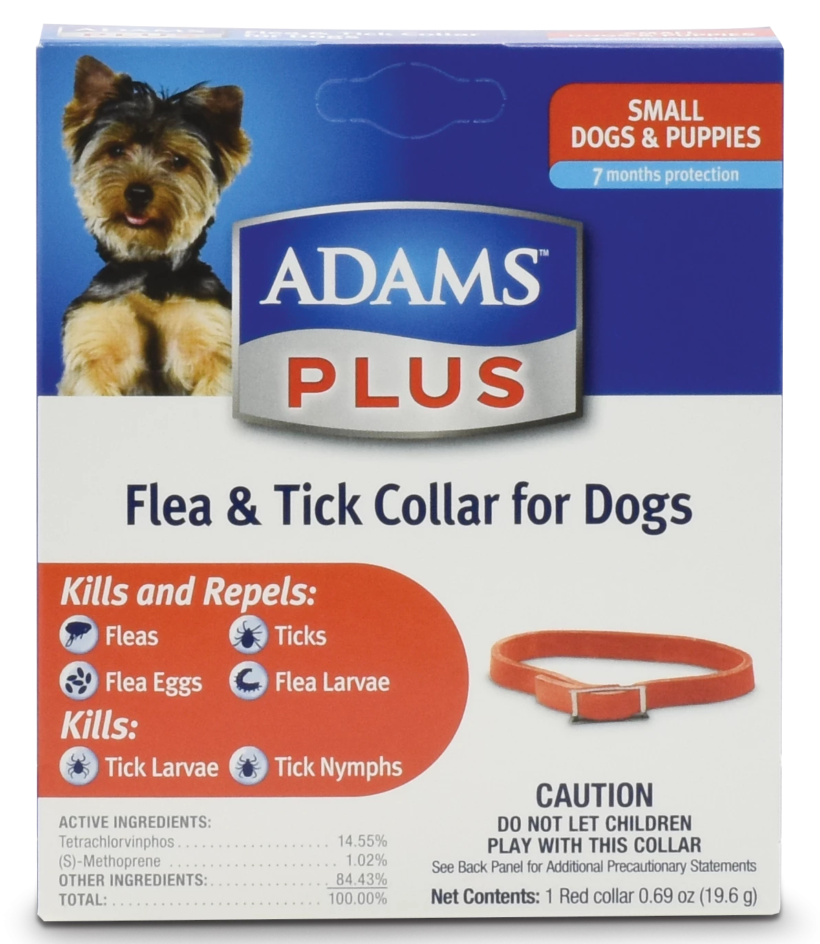 The Adams Plus Flea and Tick Collar for Dogs is perfect for smaller dogs. It provides quick relief from biting fleas and ticks and continuous protection for up to 7 months. Our collar prevents infestation by killing 3 stages of the flea and tick life cycles. This collar provides one-step to treatment and prevents re-infestations. Even when wet or completely submerged, the collar continues to be effective. This collar is also fully adjustable and water-resistant.