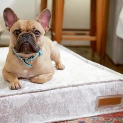 Whether your furry family member is a belly-sleeper, back-sleeper, paws-in, or paws-out, our Lounger bed is sure to be the most comfy place for a nap. Our Lounger beds are over-stuffed with a proprietary fill made from recycled plastic water bottles that gives just the right amount of support without flattening or clumping over time. We even tailored the seams with a mini-flange inspired by fine home furnishings. Sewn in a beautiful oatmeal Sunbrella fabric, with a classic toile motif, that is soft to the touch, durable, resists moisture, and is washable. There is simply no better fabric choice for a pet bed. Each piece is made by hand in the USA and begins manufacturing the day you place your order. Thoughtfully designed with your dog and your home in mind, our Lounger bed performs as good as it looks.??We recommend measuring your sleeping pet to find the perfect bed size. Pets who curl up to sleep can fit on a smaller bed, while those who stretch out need a larger bed. To determine the ideal bed length, measure your pet in their typical sleeping position, then add 6-10” for the final bed size. When in doubt, we suggest ordering the size up. Please double check that you have chosen the correct size before placing your order.??Small: 22.5 in. x 22.5 in. x 9 in. high (dogs less than 30 lbs)?Medium: 28 in. x 28 in. x 10 in. high (dogs 30-60 lbs)?Large: 42 in. x 30 in. x 12 in. high (dogs 60-90 lbs)?X-Large: 47 in. x 36 in. x 12 in. high (dogs over 90 lbs)