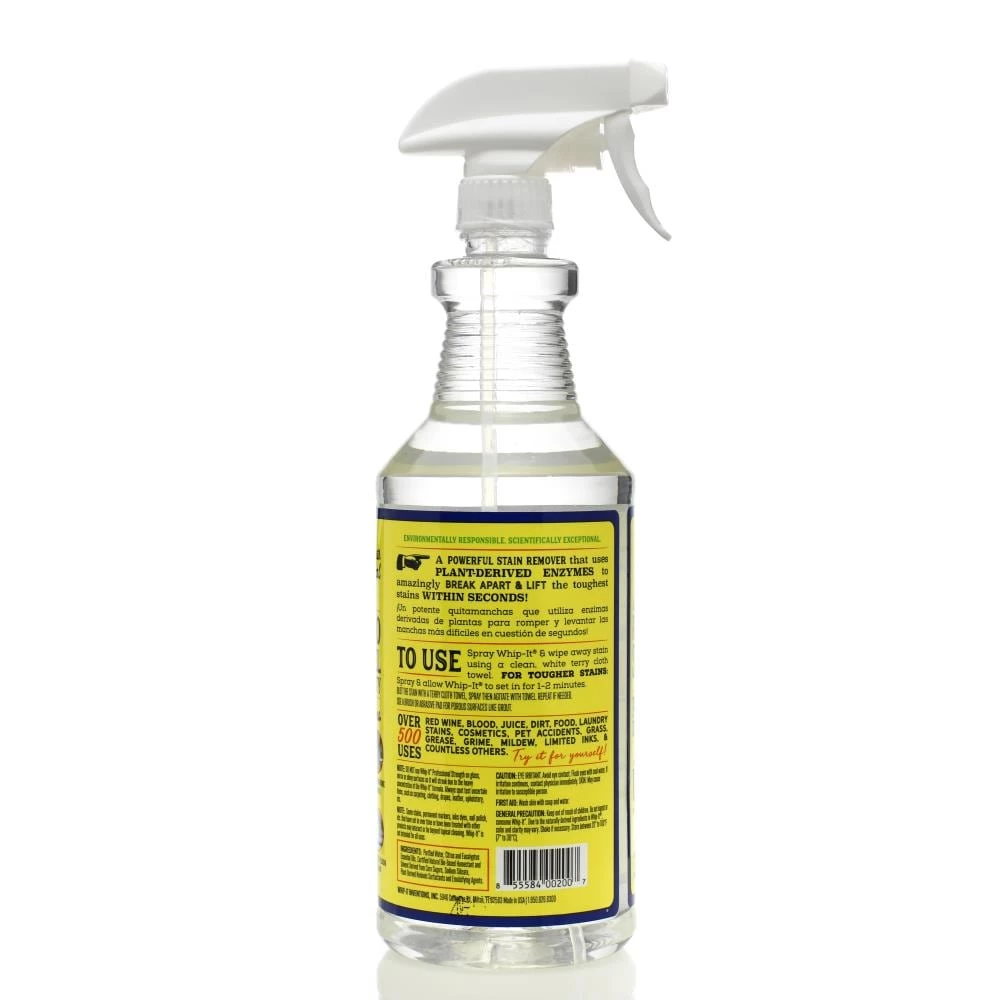 Whip-It blasts away stains, IN seconds! Whip-It is a multi-purpose, multi-surface, plant-based stain remover and super cleaner thatย breaks up the chemical bond of stains using plant-derived ingredients. Use this cleaner anywhere and everywhere in your home, automobile or office to remove your most difficult stains. The formula works on old stains, new stains, even set in stains!