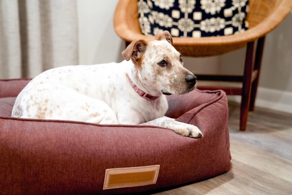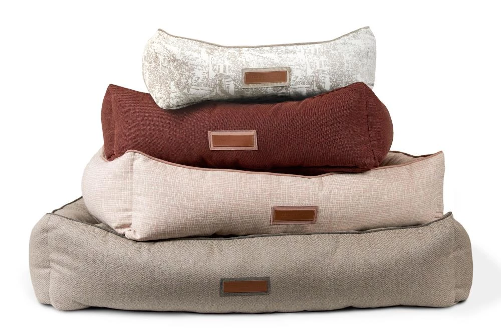 Snuggle much? For dogs that love to burrow behind cushions on the sofa, or disappear under the blankets on the bed, the Hugger makes a wonderful choice. Bolstered on all four sides, your hound is sure to find a comfortable corner to snuggle up to. The Hugger is our fluffiest, coziest bed. It’s over-stuffed with a proprietary fill made from recycled plastic water bottles that gives just the right amount to provide support and bounces back use after use. The beautifully textured russet colored Sunbrella fabric is soft to the touch, durable, resists moisture, and is washable. There is simply no better fabric choice for a pet bed. Each piece is made by hand in the USA and begins manufacturing the day you place your order. Thoughtfully designed with your dog and your home in mind, the Hugger bed performs as good as it looks.??We recommend measuring your sleeping pet to find the perfect bed size. Pets who curl up to sleep can fit on a smaller bed, while those who stretch out need a larger bed. To determine the ideal bed length, measure your pet in their typical sleeping position, then add 6-10” for the final bed size. When in doubt, we suggest ordering the size up. Please double check that you have chosen the correct size before placing your order.??Small: 24 in. x 18 in. x 7 in. high (dogs less than 30 lbs)?Medium: 30 in. x 25 in. x 8 in. high (dogs 30-60 lbs)?Large: 38 in. x 25 in. x 8 in. high (dogs 60-90 lbs)?X-Large: 44 in. x 36 in. x 10 in. high (dogs over 90 lbs)