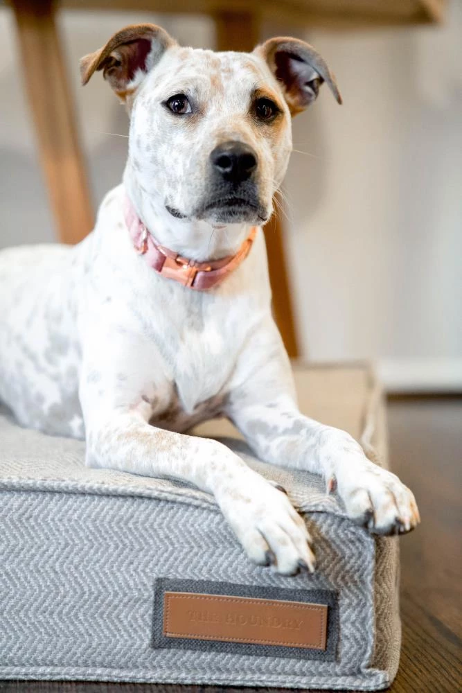 For pets with joint pain, or those that enjoy a firmer, platform-style napping place, our Orthopaedic Lounger is the perfect choice. The dense orthopaedic foam cushions pressure points and provides more body support than a poly filled dog bed. When muscles and joints ache, there’s nothing better than a good night’s sleep. Sewn in a menswear inspired gray herringbone Sunbrella fabric that is soft to the touch, durable, resists moisture, and is washable. There is simply no better fabric choice for a pet bed. We even tailored the seams with a mini-flange inspired by fine home furnishings. Each piece is made by hand in the USA and begins manufacturing the day you place your order. Thoughtfully designed with your dog and your home in mind, our orthopaedic Lounger bed performs as good as it looks.??We recommend measuring your sleeping pet to find the perfect bed size. Pets who curl up to sleep can fit on a smaller bed, while those who stretch out need a larger bed. To determine the ideal bed length, measure your pet in their typical sleeping position, then add 6-10” for the final bed size. When in doubt, we suggest ordering the size up. Please double check that you have chosen the correct size before placing your order.??Small: 22 in. x 22 in. x 6 in. high (dogs less than 30 lbs)?Medium: 28 in. x 28 in. x 6 in. high (dogs 30-60 lbs)?Large: 42 in. x 31 in. x 6 in. high (dogs 60-90 lbs)?X-Large: 48 in. x 36 in. x 6 in. high (dogs over 90 lbs)