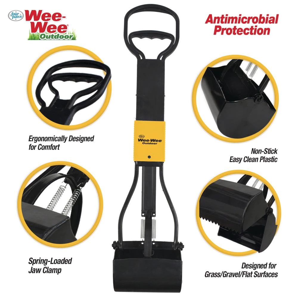 Cleaning up after your dog is not the most glamorous aspect of pet parenting, but the Wee-Wee Fold-Away Pooper Scooper is designed to make the task easier! No matter where the mess lies, this dual-edge scooper is designed to clean multiple types of surfaces. The smooth edge effectively removes waste from flat surfaces such as sidewalks and patios while the teeth are perfect for grass and gravel. Made of non-stick plastic that is easy to clean, this heavy duty pooper scooper features antimicrobial protection that inhibits odors caused by bacteria and odor blocking technology that prevents odor absorption. With a spring-loaded jaw clamp, securely clearing waste is quick and simple. The durable, lightweight dog scooper comfortably extends over 2 feet tall and easily folds for compact storage. Plus, the ergonomic handle is designed for optimal comfort!