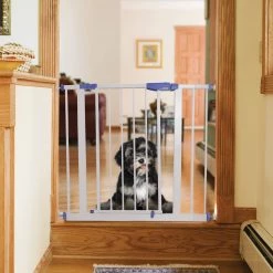 Confine your dog to certain areas of your home with the Pet Essentials pet gate. It is easy to use and install. Simply place in door and pressure mount to the frame. No tools required! The one-handed latch release makes walking through it easy, and then lock the gate back with a simple push. The gate is 29.5-inches tall and fits many standard household door frames. This gate is designed for use with pets, not for use by or with children.