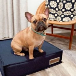 For pets with joint pain, or those that enjoy a firmer, platform-style napping place, our Orthopaedic Lounger is the perfect choice. The dense orthopaedic foam cushions pressure points and provides more body support than a poly filled dog bed. When muscles and joints ache, there’s nothing better than a good night’s sleep. Sewn in a beautifully textured navy Sunbrella fabric that is soft to the touch, durable, resists moisture, and is washable. There is simply no better fabric choice for a pet bed. We even tailored the seams with a mini-flange inspired by fine home furnishings. Each piece is made by hand in the USA and begins manufacturing the day you place your order. Thoughtfully designed with your dog and your home in mind, our orthopaedic Lounger bed performs as good as it looks.??We recommend measuring your sleeping pet to find the perfect bed size. Pets who curl up to sleep can fit on a smaller bed, while those who stretch out need a larger bed. To determine the ideal bed length, measure your pet in their typical sleeping position, then add 6-10” for the final bed size. When in doubt, we suggest ordering the size up. Please double check that you have chosen the correct size before placing your order.??Small: 22 in. x 22 in. x 6 in. high (dogs less than 30 lbs)?Medium: 28 in. x 28 in. x 6 in. high (dogs 30-60 lbs)?Large: 42 in. x 31 in. x 6 in. high (dogs 60-90 lbs)?X-Large: 48 in. x 36 in. x 6 in. high (dogs over 90 lbs)